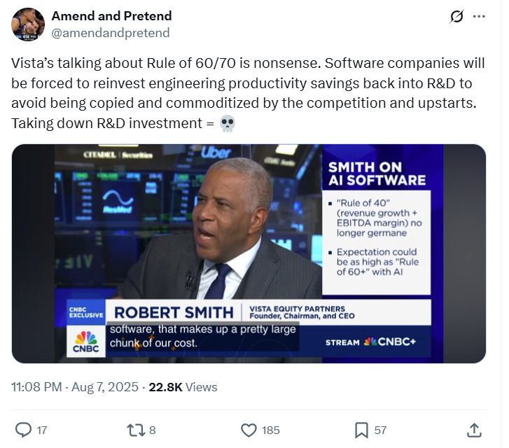And with that said, especially in the age of AI, many think the Rule of 40 is increasingly a weak bar. Robert Smith, founder of Vista Equity, certainly thinks so.