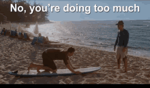 "The less you do, the more you do. Let's see you pop up… That's not it at all… Do less… Ok, no, you gotta do more than that, it looks like you're boogie boarding."