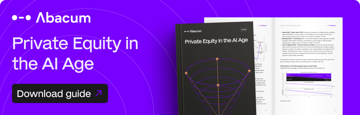Abacum just published Private Equity in the AI Age - a field guide written for CFOs navigating post-deal pressure, roll-up complexity, and the 100-day sprint. It covers how AI-enabled businesses are commanding higher multiples, what PE firms now expect from PortCo finance teams, and how to structure capital, debt, and treasury decisions amid accelerating deal velocity. This isn't a trend report. It's the playbook I wish I'd had.