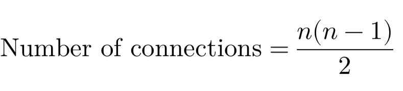 A 10-person startup has 45 potential lines of communication. A 100-person company? 4,950.