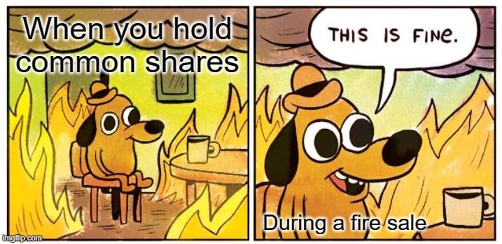 In reality, the headline valuation was all smoke and mirrors - the common shares are worth less than they were before on a risk adjusted basis. Said another way, the company’s risk has been reallocated disproportionally.